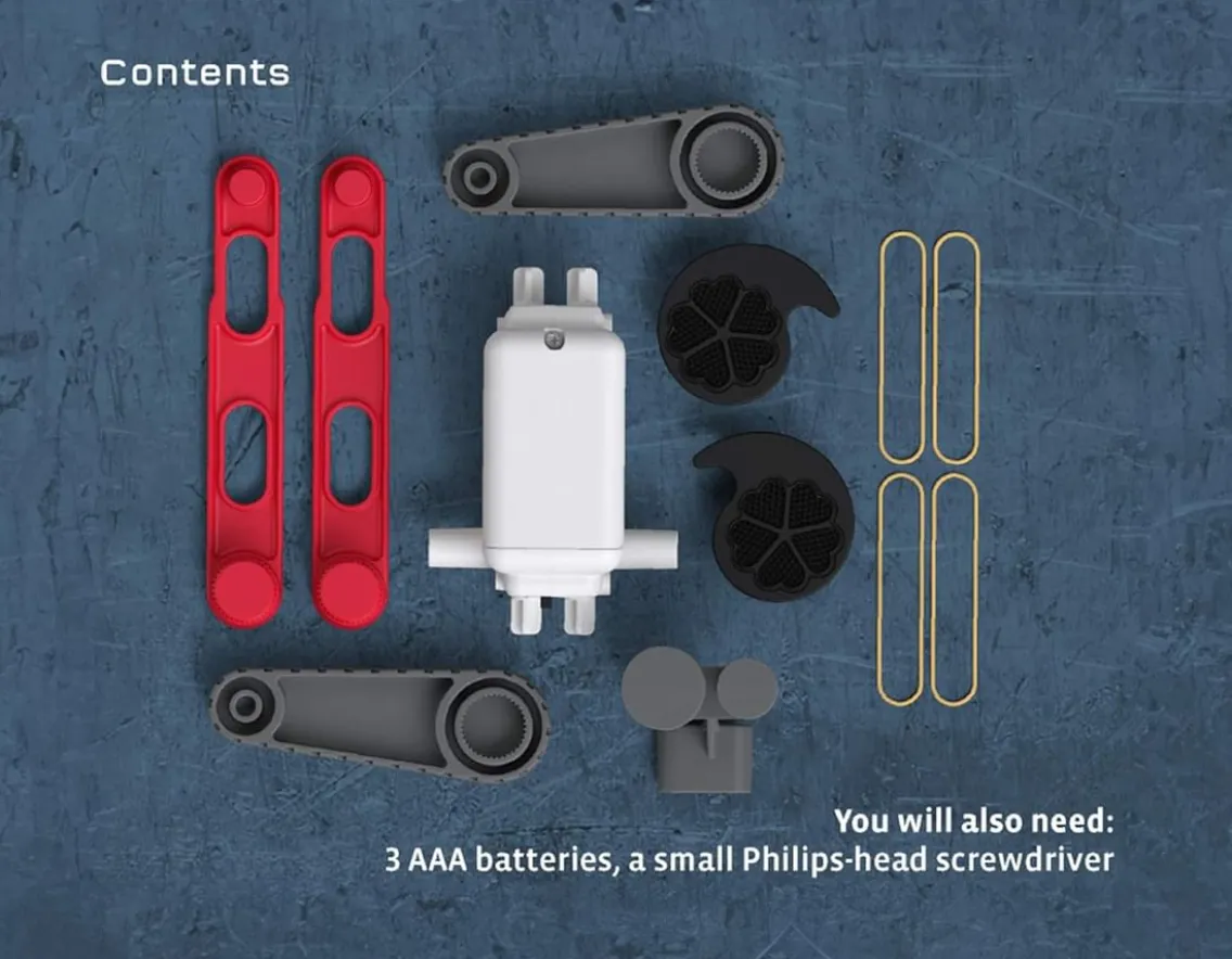 Clever 12-piece kit to create a cool robot that propels himself along.