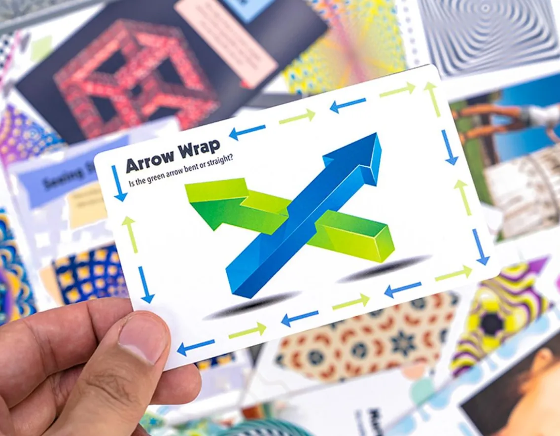 Get your sights in a spin with this crazy collection of optical illusions! Each of the fifty cards is printed with an extraordinary image or pattern guaranteed to make you think twice. From patterned wheels that spin out of the corner of your eye to kaleidoscopic mosaics that wiggle on the page, these visual tricks are truly brain bending. Baffle your friends and family with some truly mind-boggling illusions – sure to amaze.