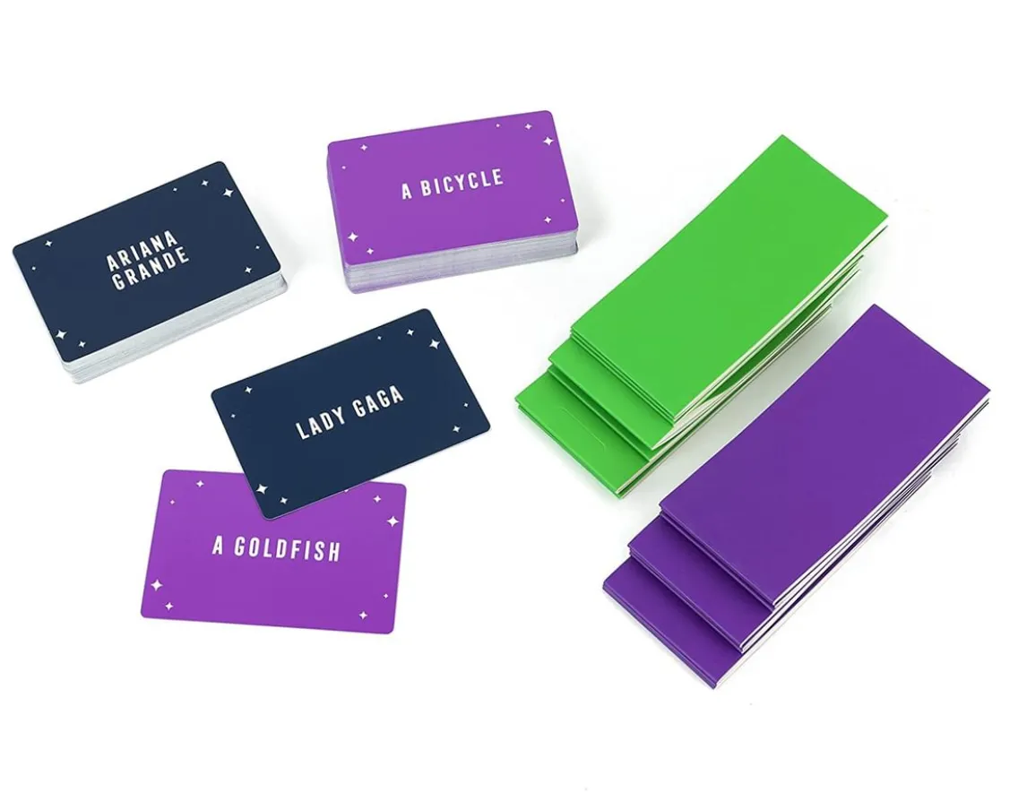 Am I an animal? Am I large? Do I make a noise? The classic game of asking yes or no questions to figure out what you are! Simply pop on your headband and tuck in one of the 100 object and people cards. Then start asking questions – will you be a household object, animal, celebrity or even a cartoon character. From a banana to a panda, James Bond to Jack Sparrow, this is a game that everyone can play. With six headbands, in two colours for team or singles play – Get guessing!