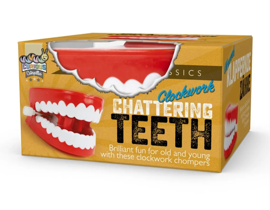 An absolute classic, these hilarious teeth are infinitely amusing. No batteries needed, simply turn the dial to wind the clockwork mechanism. Set them on a flat surface and watch them go wild! They make a funny chattering noise, hopping around as they go. Approximately life-sized, they are perfect for pranks – set them on your sister or give Grandad a fright… Mischievous chompers with timeless charm. Sure to put a smile on anybody’s face!