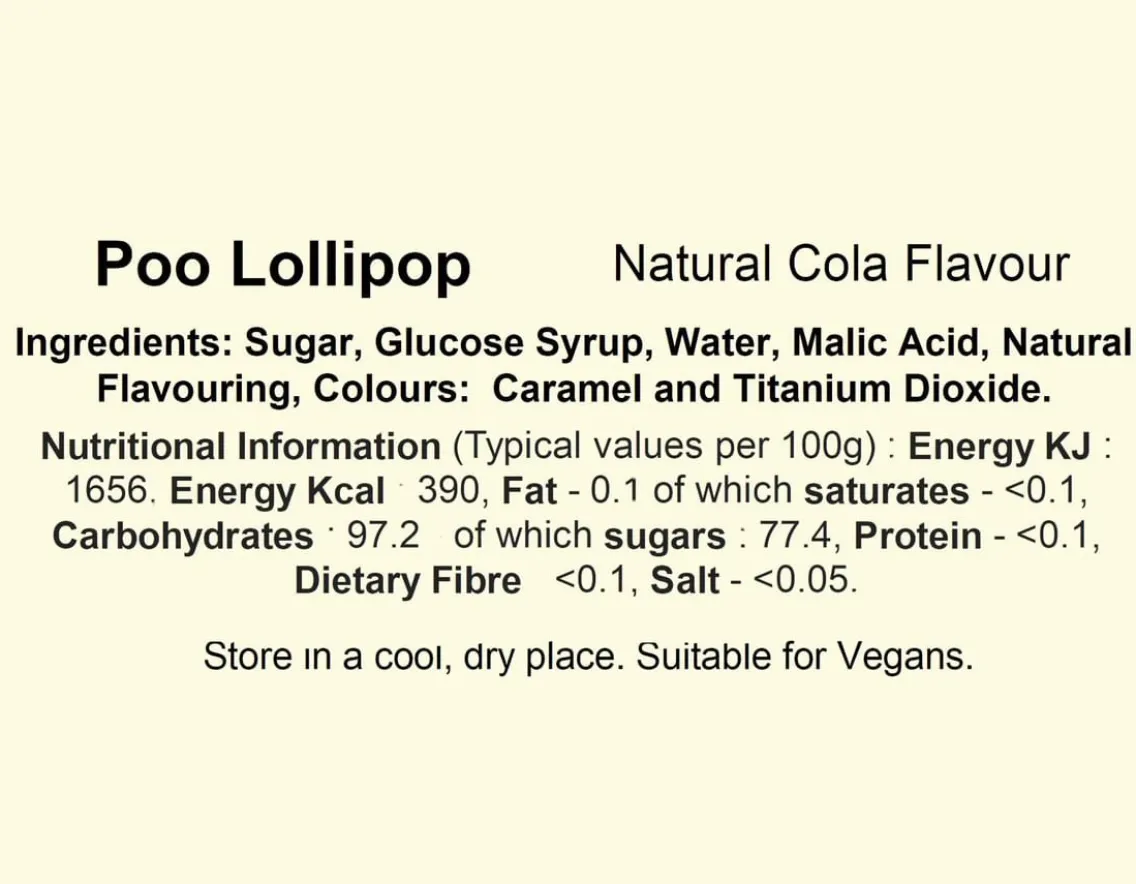 Embrace the childish with this silly lollipop! Measuring 9cm, it has a cheeky poo emoji motif, complete with goofy grin. The same texture as boiled sweets, it has a totally delicious natural cola flavour – yum! Made in the UK and suitable for vegans too. Great for any occasion. Fantastically immature!