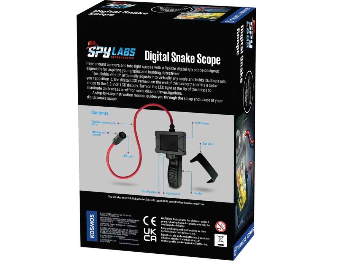 Peer around corners and hard to reach places with this awesome digital snake scope! From exploring insect habitats to peeking into a bird’s nest or spying on the dog, the options are endless – even features an LED light to illuminate all your findings. Perfect for the aspiring adventurer or spy, easily adjustable to any angle and holds its shape! Complete with a sun visor to clearly view the 2.3inch display screen. Reach the unreachable!