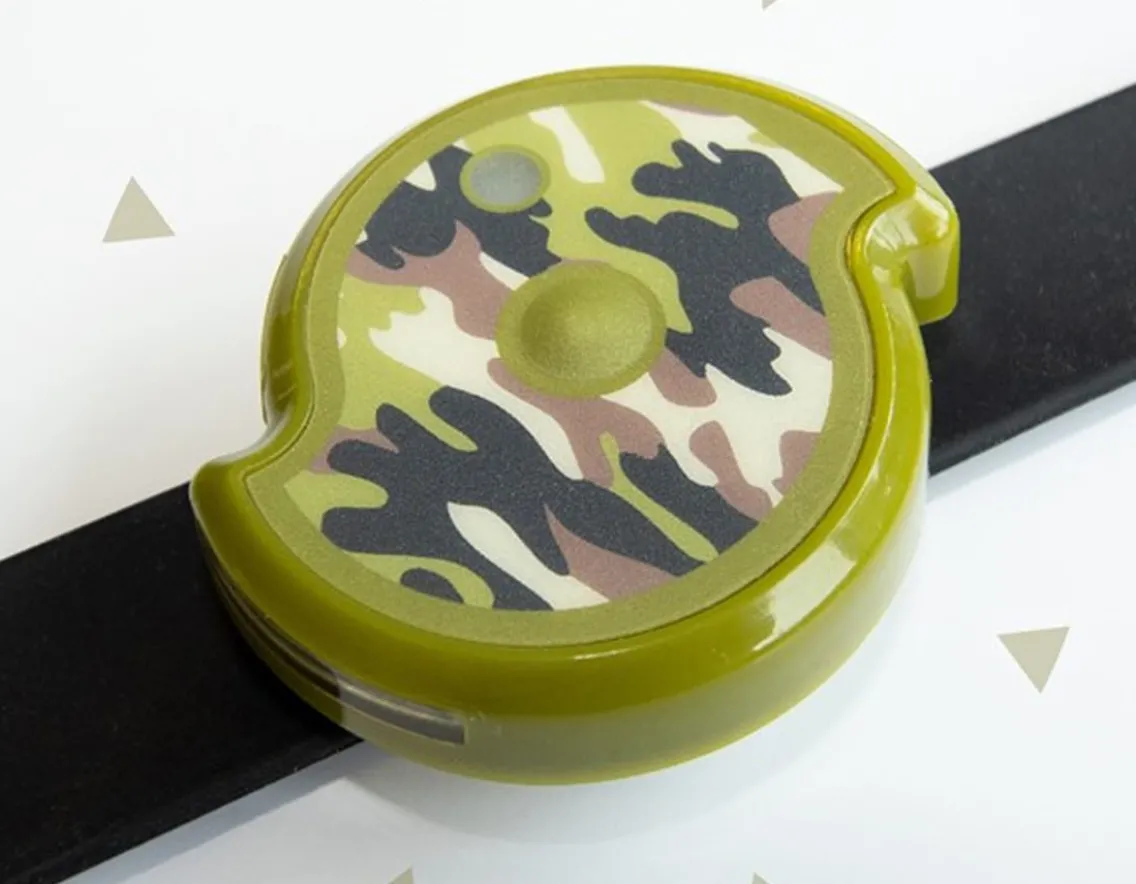 An innovative rotating wrist torch with a simple snap strap and cool camo print.