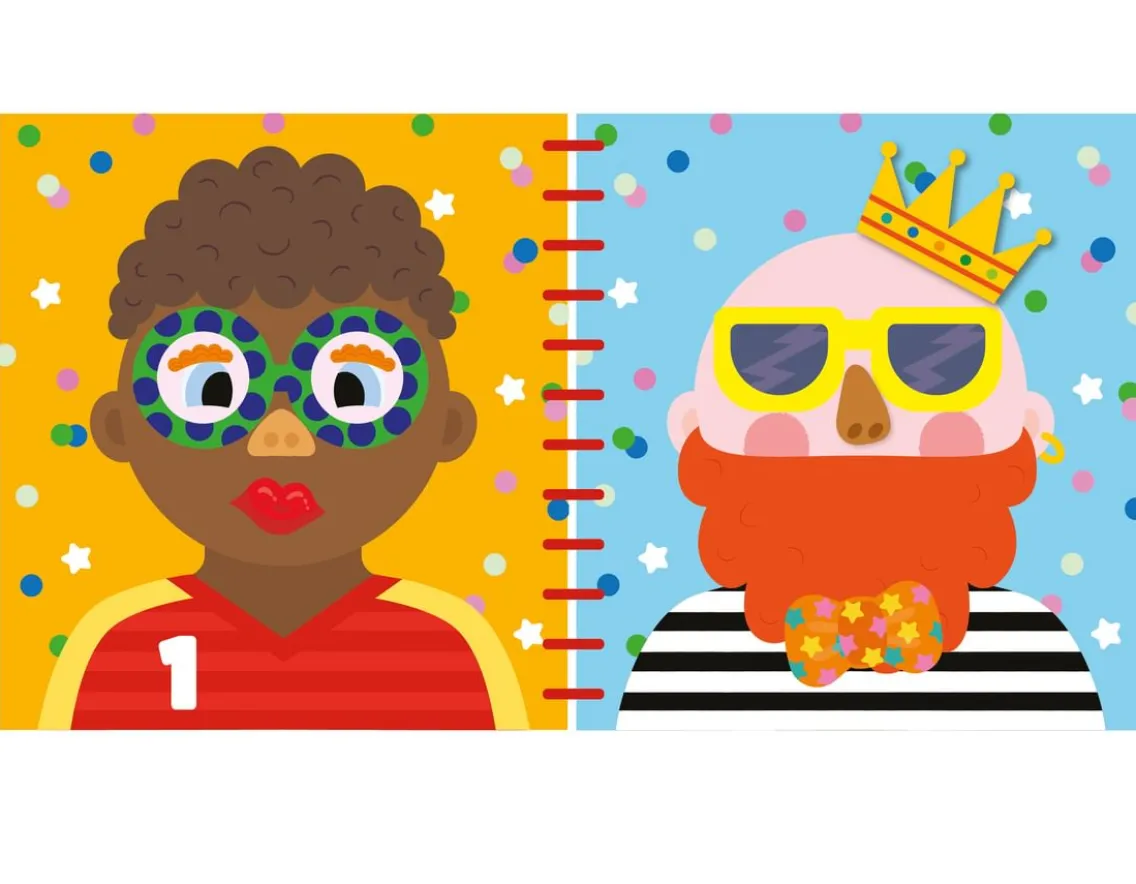 This clever and exciting book includes more than 50 special stickers to combine in infinite ways! From glasses and facial hair to cheerful grins and funny hats, mix and match to create unique looks for the eight template characters. Would a pirate look good in pink shades? Do astronauts wear bow ties?! Each colourful sticker is made of sturdy silicone and is completely reusable. A great on-the-go toy for mess-free fun, again and again!