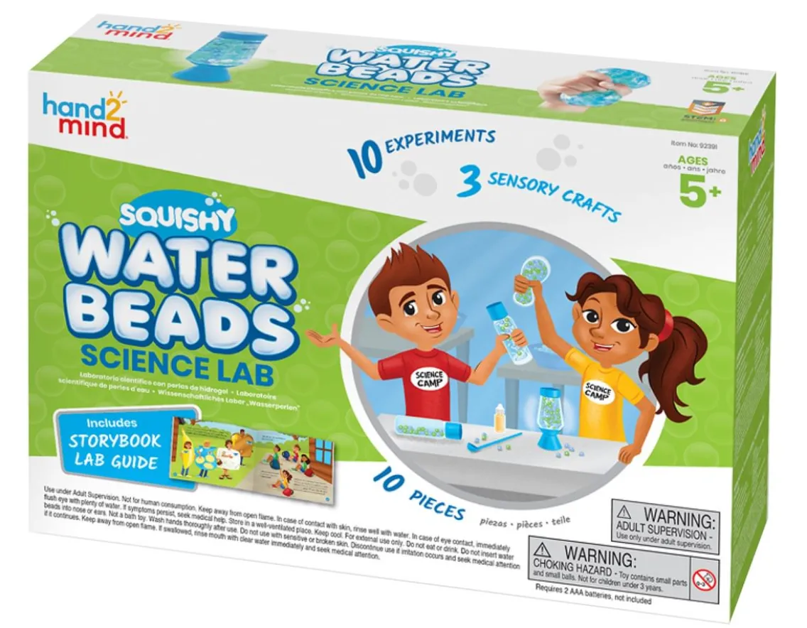 This fun immersive play and learning set introduces children to science and sensory play in an interactive way. Follow the 36-page illustrated storybook, learning about solids and liquids with fascinating water beads. Carry out ten fun experiments with the simple step-by-step instructions – make a scented mini mood lamp, squishy stress ball and soothing sensory bottle. Squishy, squashy science made fun, perfect for the curious mind!