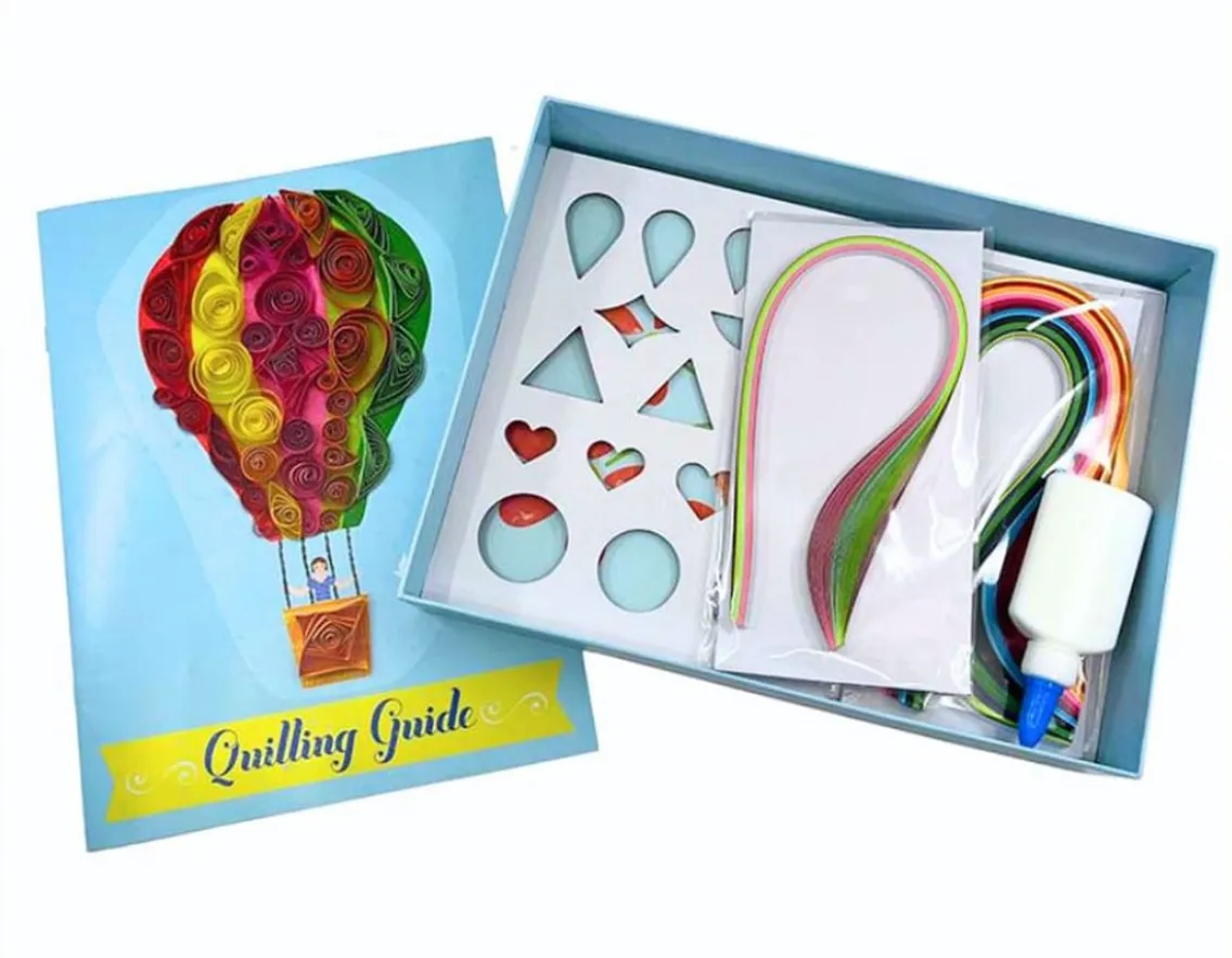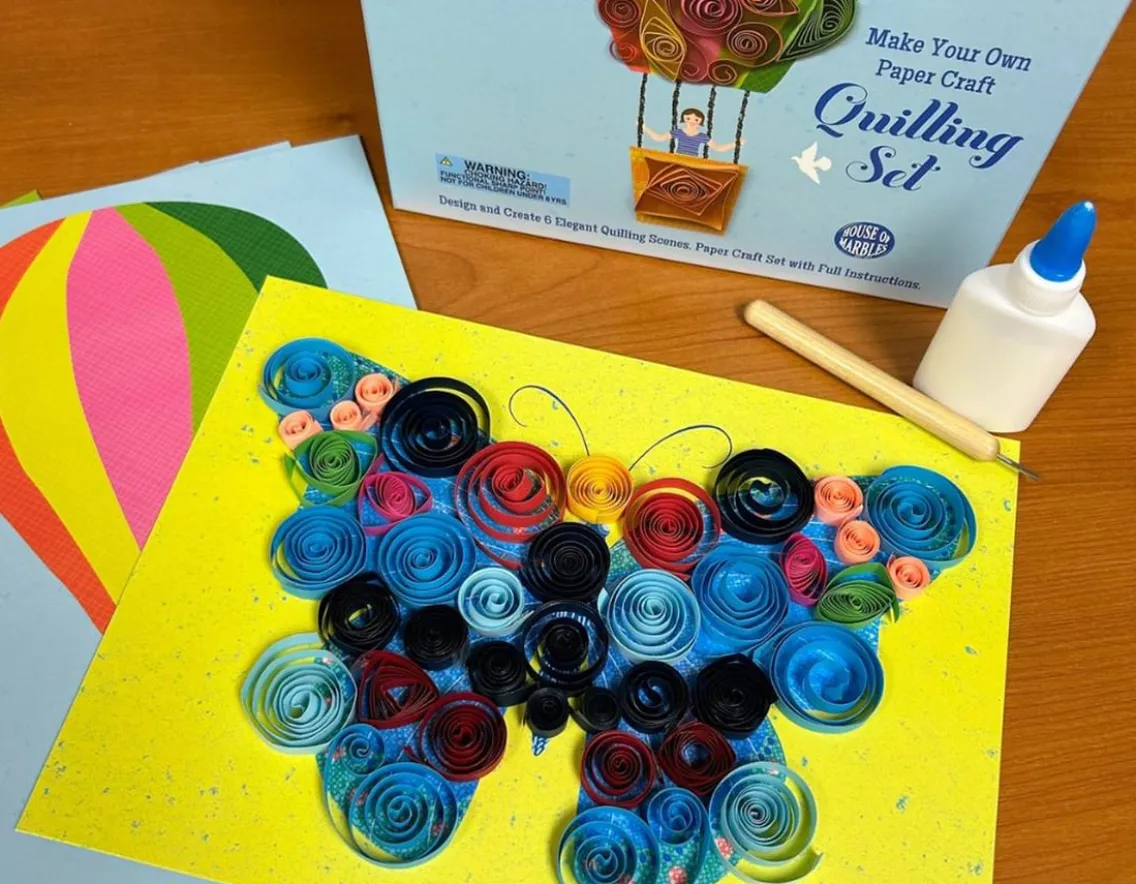 This brilliant creative set includes six pre-drawn 20cm x 27cm picture boards and 220 strips of paper in a range of bright colours. Master the art of paper quilling as you use the special tool to roll the strips into spiralling shapes, then pinch and glue them into place. The final result is six striking pieces of 3D artwork, from butterflies and flowers to a hot air balloon. Easy to do and simply beautiful to look at. Brilliant!