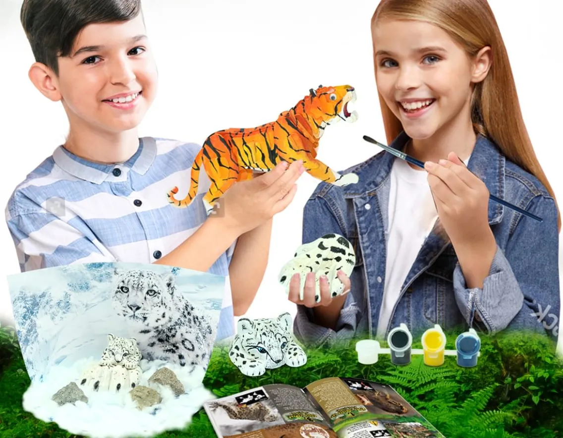 This cool kit is all about the world’s most extreme cats, from the Cheetah to the Bengal Tiger. Follow along with the 15-page guide as you learn facts and carry out crafts. Create your own model paw and baby leopard from plaster, then add colour with the paints provided. Pop-out and assemble wooden pieces to make a 3D tiger model! Packed with pictures and fun facts – did you know that a lion’s roar can be heard 5 miles away? Fascinating!