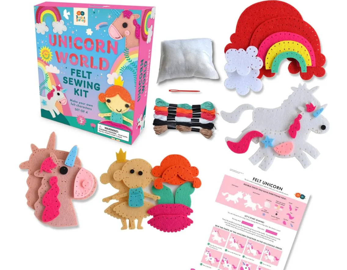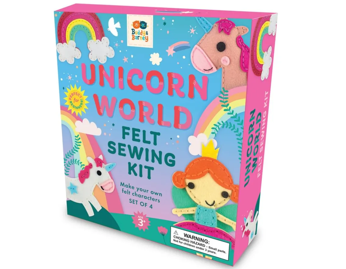 Ideal for beginners, this lovely sewing set contains the materials for four sewing projects. Following the simple illustrated instructions, use the plastic safety needle and colourful thread to assemble the pre-cut felt into cute designs, including a fairy, a rainbow and two unicorns. Each sturdy piece of felt has drilled holes to guide you. Then stuff and display your wonderful creations. A fantastically fun project for any fairytale-lover – ‘sew’ adorable!