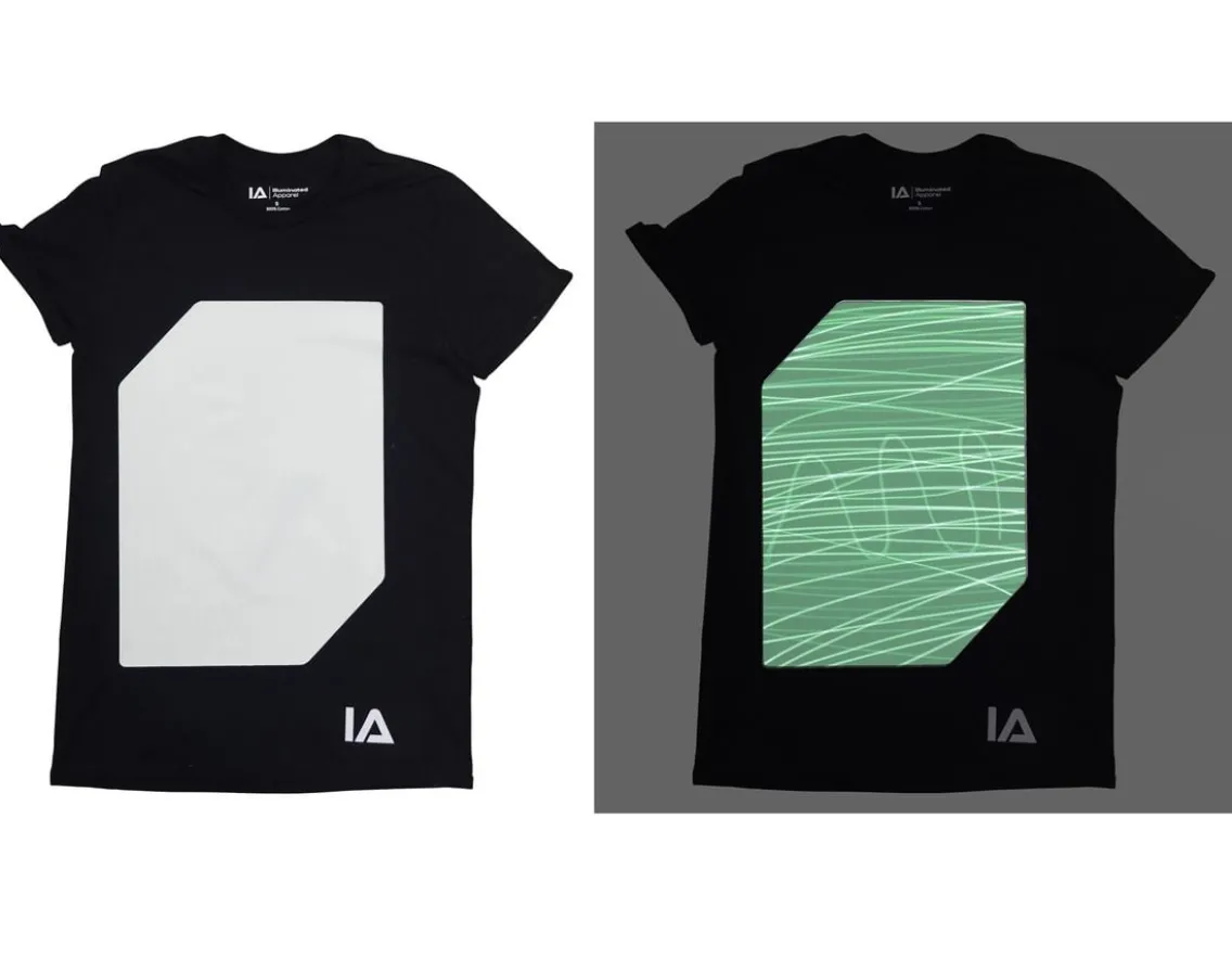 Smart interactive t-shirt that you draw on with light and glows in the dark (30″ chest).