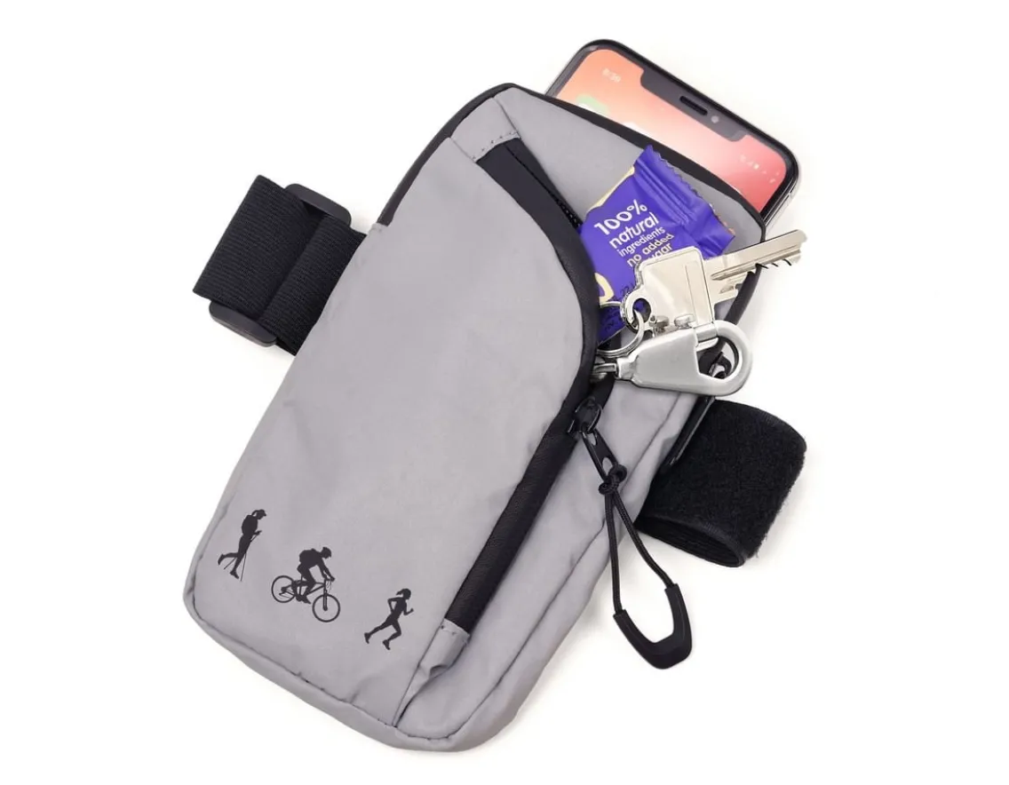 Reflective and waterproof armbag, for sport and leisure.