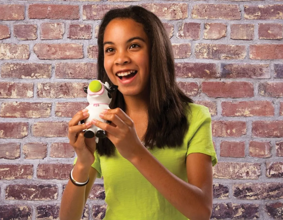 This super cute cow can shoot – put a small foam ball in his nose and squeeze his tummy to fire.
