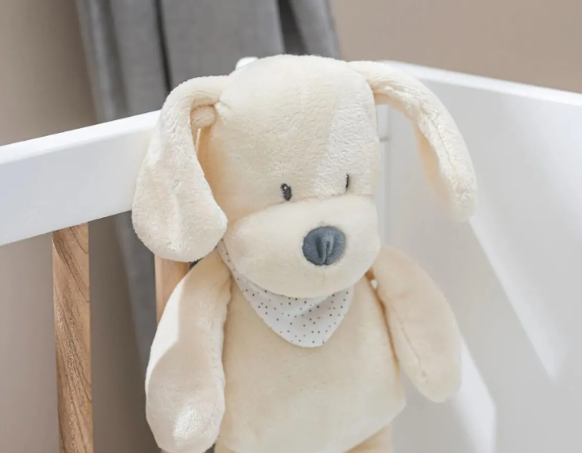 Make bedtime a dream with this adorable plush! Simply use the straps to easily attach to the side of the cot. Puppy’s tummy glows softly and cycles through a rainbow of shades whilst he plays one of five sounds – mothers heartbeat, rippling water, white noise and two lullabies. The rechargeable sound unit can even be removed for easy cleaning. Designed in Belgium by luxury brand Nattou, with a 15 minute sleep timer too. Sweet dreams!